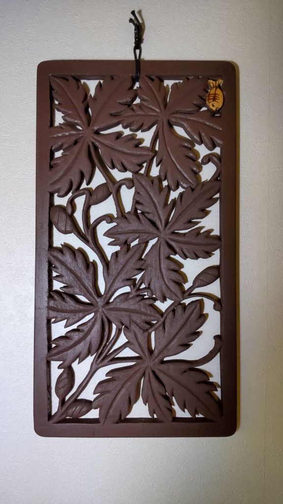 使い終えた魚用まな板を再利用しました。右上の魚は、まな板に有った焼き印を残しました。